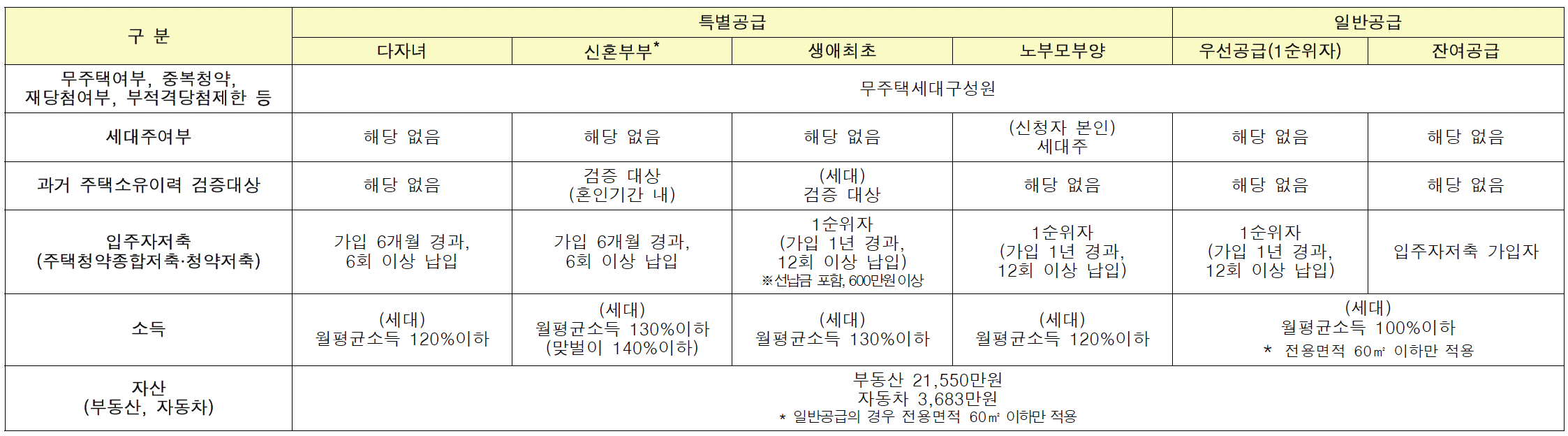 -소득조건: 공급유형별 기준이 되는 소득금액이 달라서 아래 표를 참고하자.