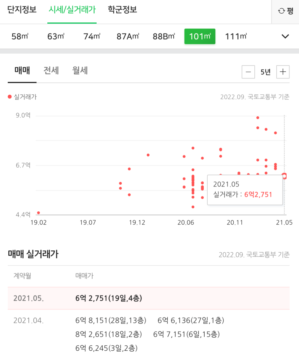 현재 힐스테이트 푸르지오 수원 아파트의 호가를 찾아보면 59타입은 5.8억원에 거래된 이력이 있습니다. 못해도 1억원의 안전마진은 확실하네요..